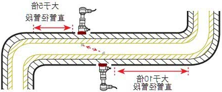 安装距离:为保证测量精度和稳定性,传感器的安装点应选择在流场分布均匀的直管段部分(正常使用时管道中必须充满液体)。必须遵循以下原则: