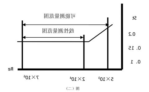 图(二)表示斯特罗哈尔数(St)与雷诺数(Re)的关系。