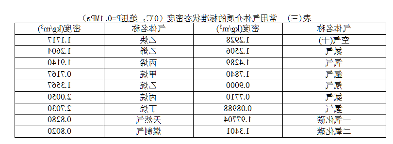ρo:介质在标准状态下的密度(kg/m3),常用气体介质的标准状态密度,见表(三)